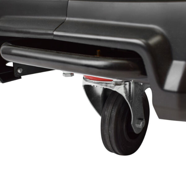 Dotata di manico e ruote pivottante con freno.